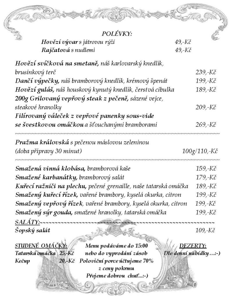 OBĚDOVÁ NABÍDKA - NEDĚLE 2.11.2025 Kliknutí Vítáme Vás na Schwarzenberském panském dvořePROVOZNÍ DOBA: PO – ZAVŘENO ÚT-SO – 11:00 – 22:00 (vaříme do 21:30) NE – 11:00 – 17:00 Sledovat